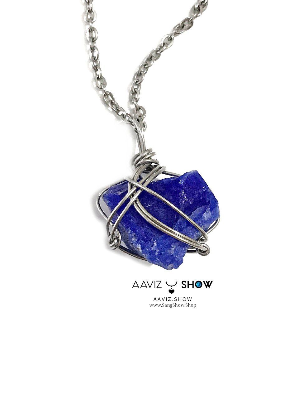 آویز ابسیدین راف با قاب مفتولی استیل و ویژه ساخته شده با عشق خالص طبیعی و معدنی با خواص شگفت انگیز بهمراه زنجیر استیل ضد حساسیت
