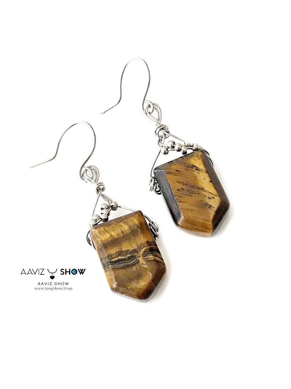 گوشواره سنگ چشم ببر معدنی با تراش خاص و زیبا ساخته شده با عشق خالص طبیعی و معدنی با خواص شگفت انگیز با متریال استیل ضد حساسیت برای تو