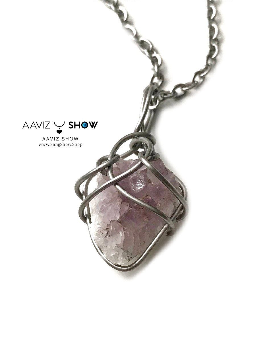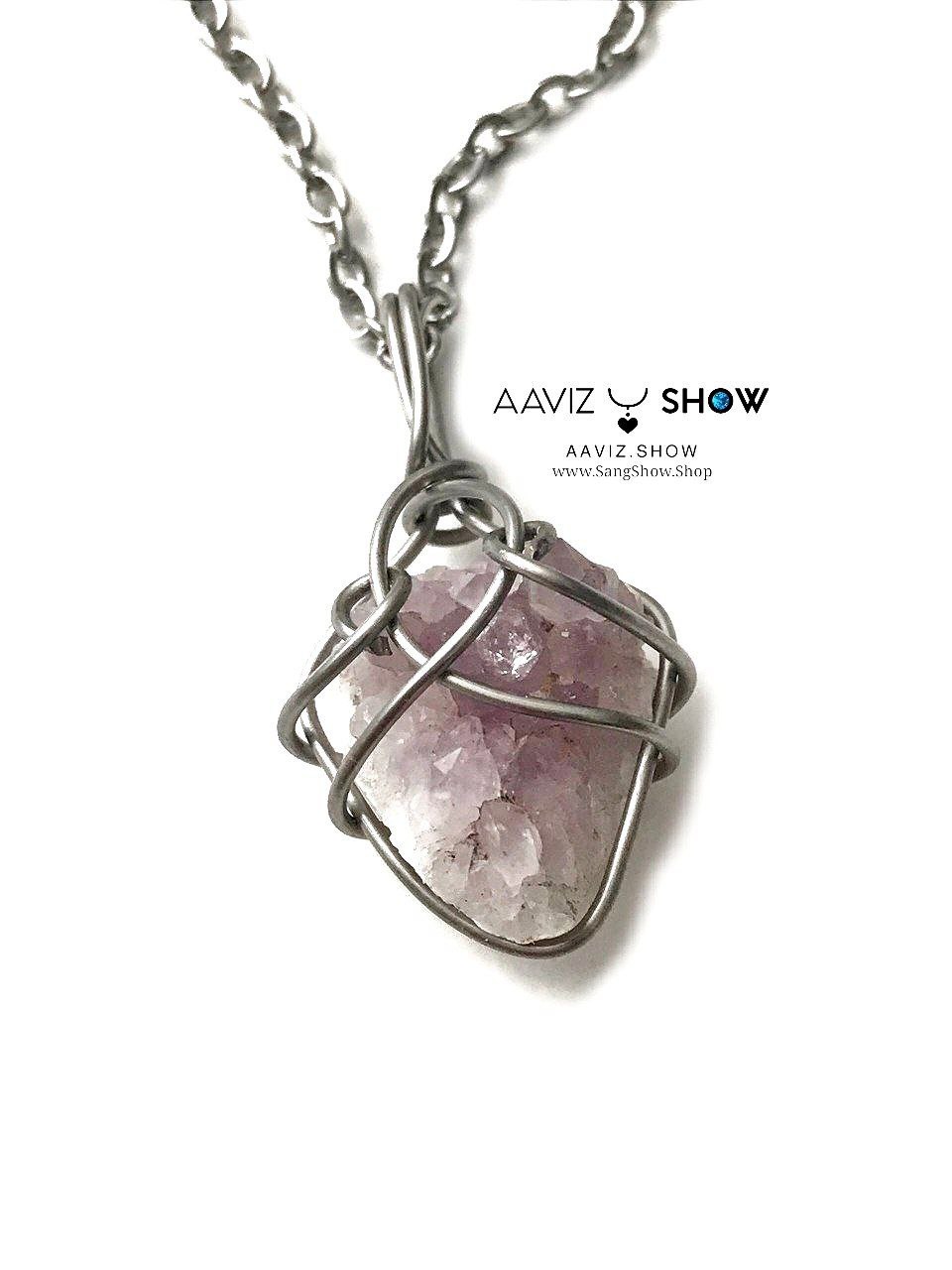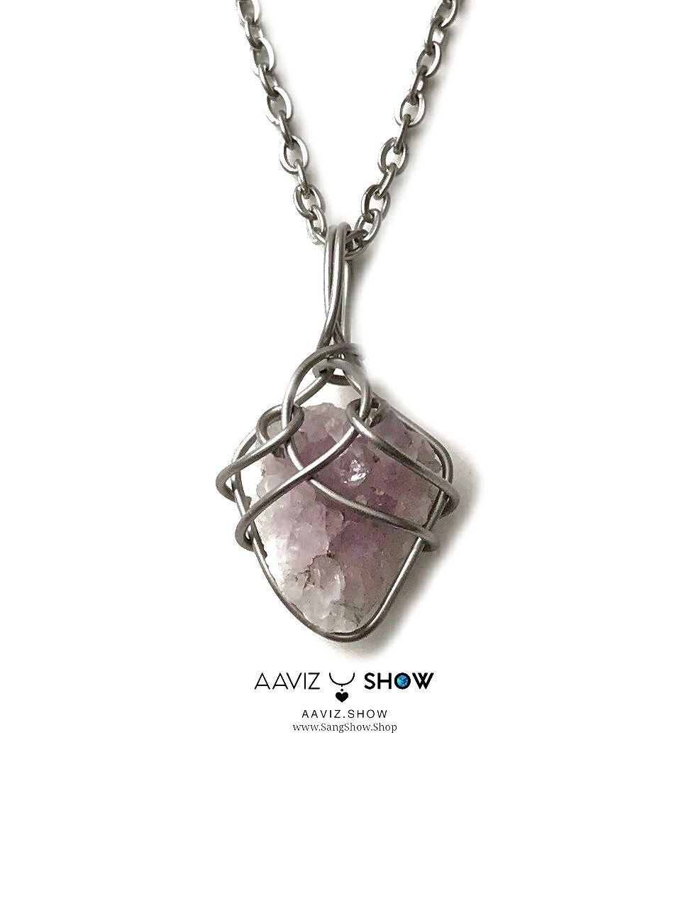 آویز راف بلور آمیتیست نمونه اصل و استثنایی ساخته شده با عشق خالص طبیعی و معدنی با خواص شگفت انگیز بهمراه زنجیر استیل ضد حساسیت