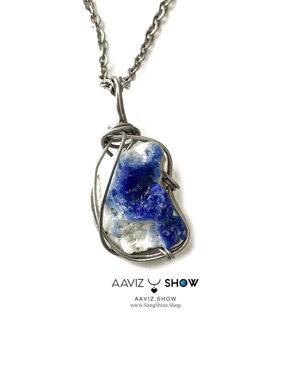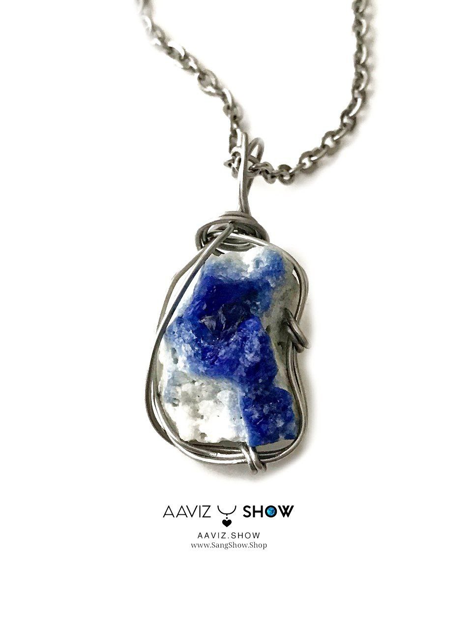 آویز سنگی ابسیدین آبی بر روی بستر نمونه کمیاب و استثنایی ساخته شده با عشق خالص طبیعی و معدنی با خواص شگفت انگیز بهمراه زنجیر استیل ضد حساسیت