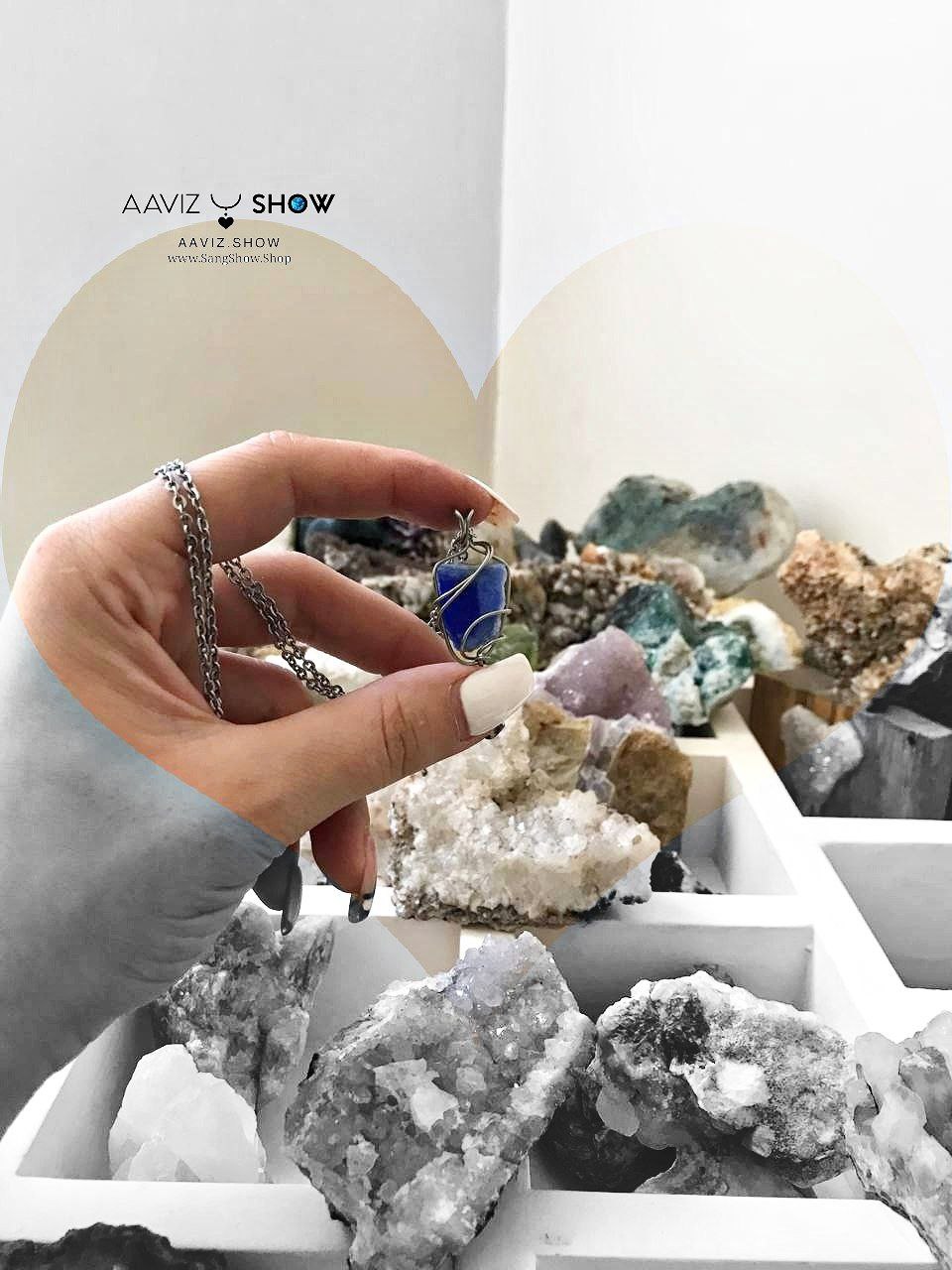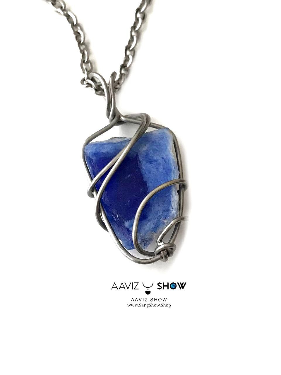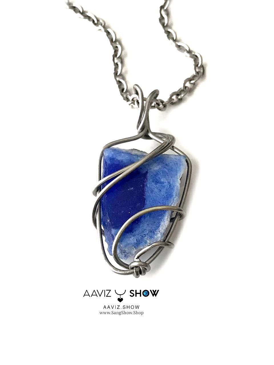 آویز سنگ کوارتز آبی راف و خوشرنگ با قاب مفتول خاص ساخته شده با عشق خالص طبیعی و معدنی با خواص شگفت انگیز بهمراه زنجیر استیل ضد حساسیت