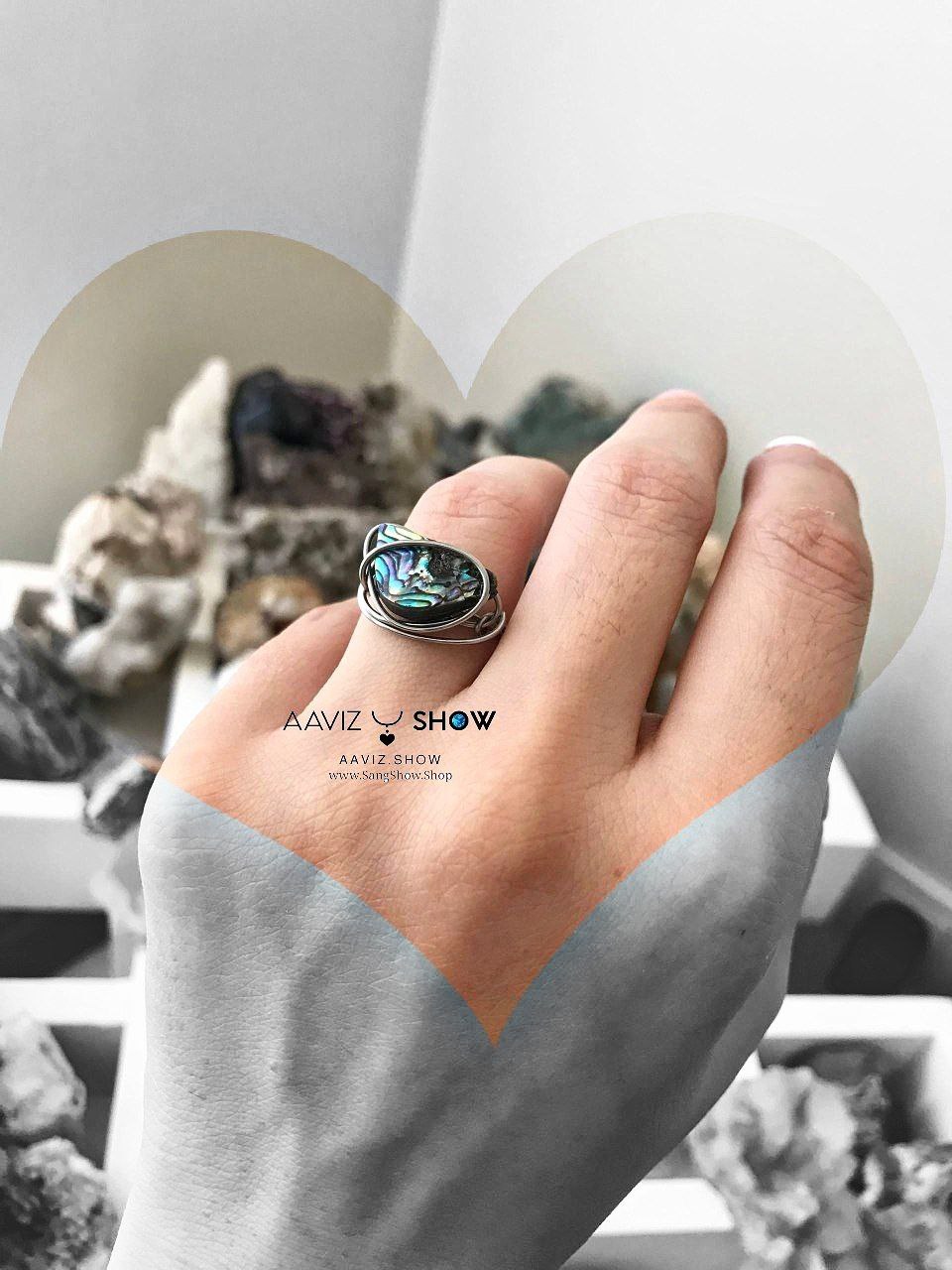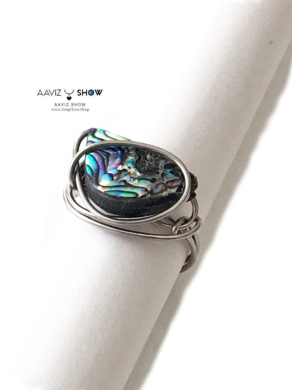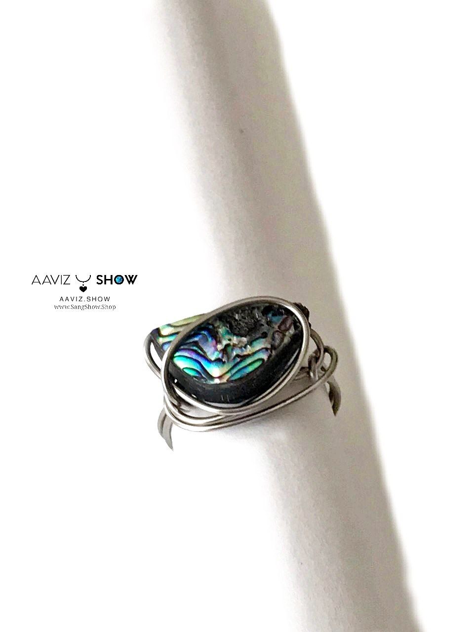 انگشتر صدف آبالون با مفتول استیل اصل و معدنی R30