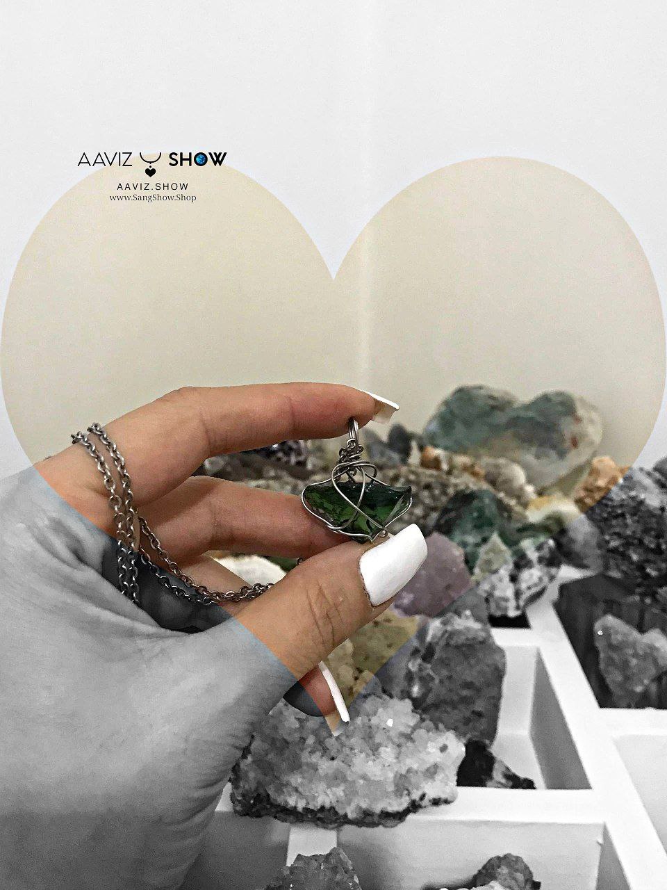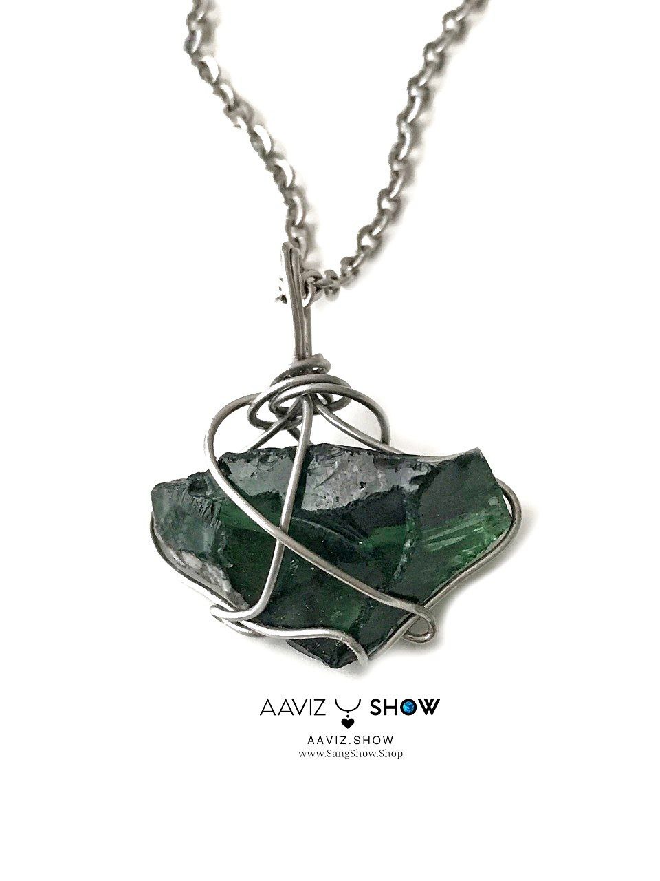 گردنبند ابسیدین سبز نمونه راف و استثنایی و معدنی ساخته شده با عشق خالص طبیعی و معدنی با خواص شگفت انگیز بهمراه زنجیر استیل ضد حساسیت