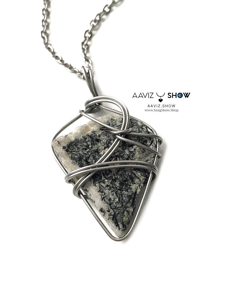 گردنبند تورمالین سیاه ریز بلور راف و اصل با قاب مفتولی استیل ساخته شده با عشق خالص طبیعی و معدنی با خواص شگفت انگیز بهمراه زنجیر استیل ضد حساسیت