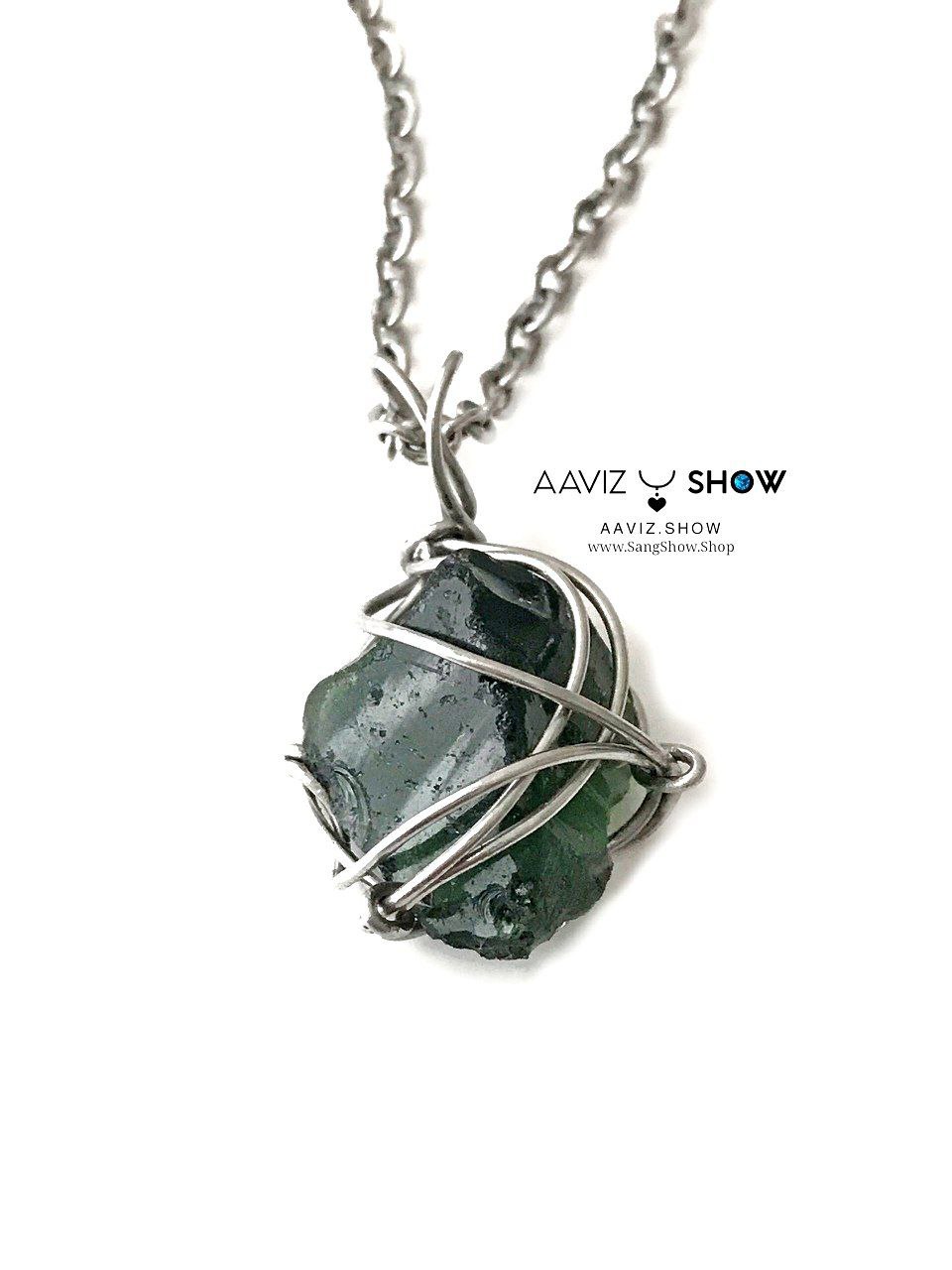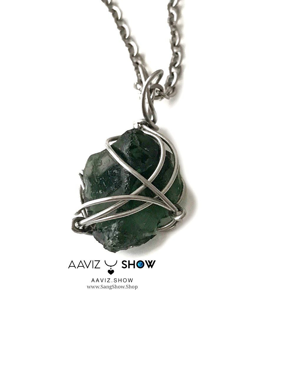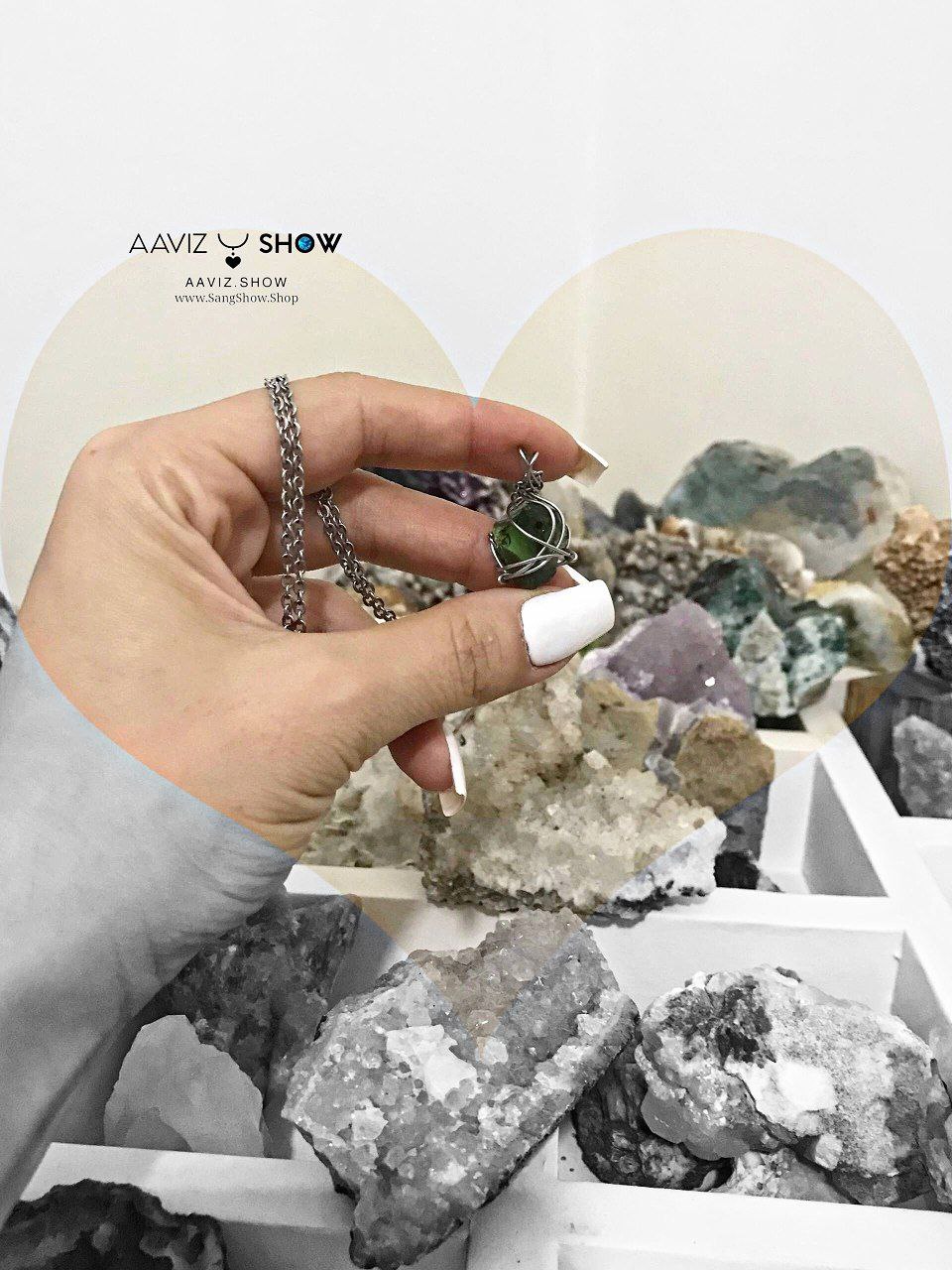 گردنبند سبز ابسیدین نمونه راف و معدنی با بافت مفتولی ویژه ساخته شده با عشق خالص طبیعی و معدنی با خواص شگفت انگیز بهمراه زنجیر استیل ضد حساسیت