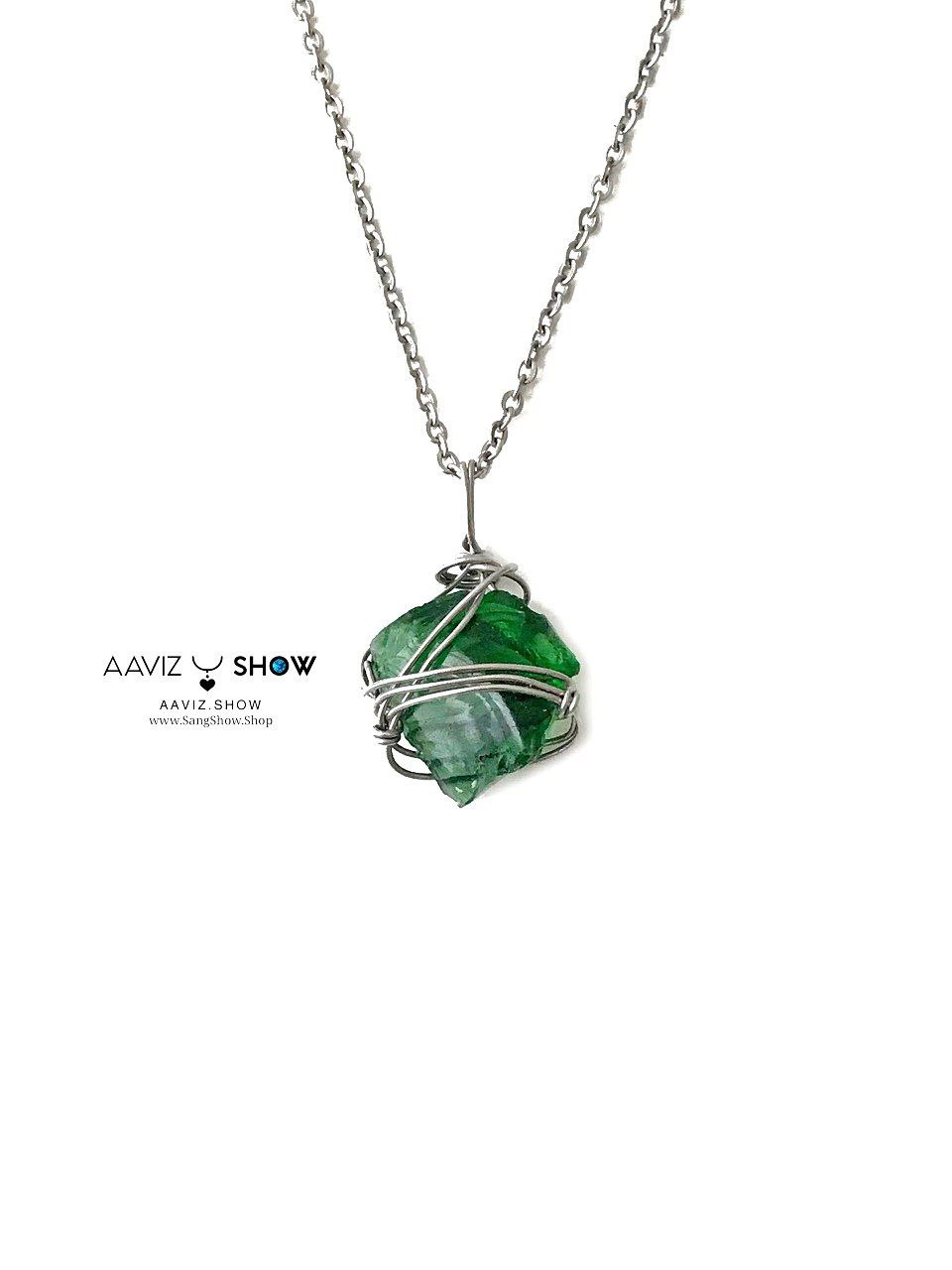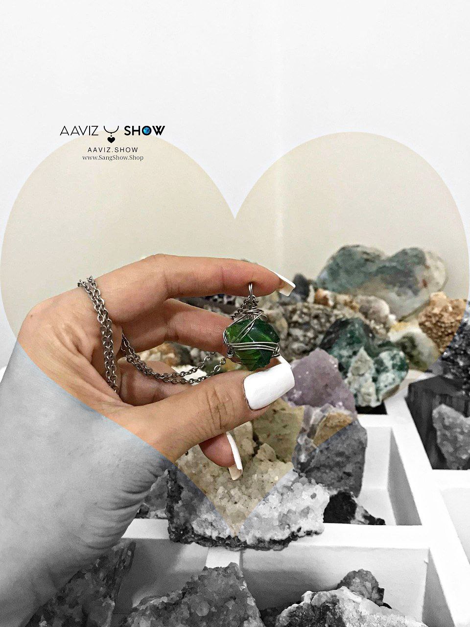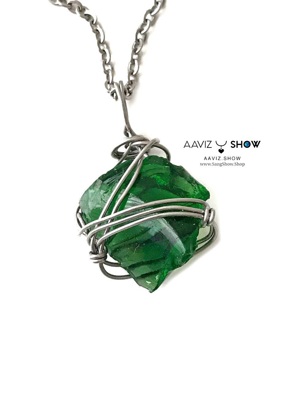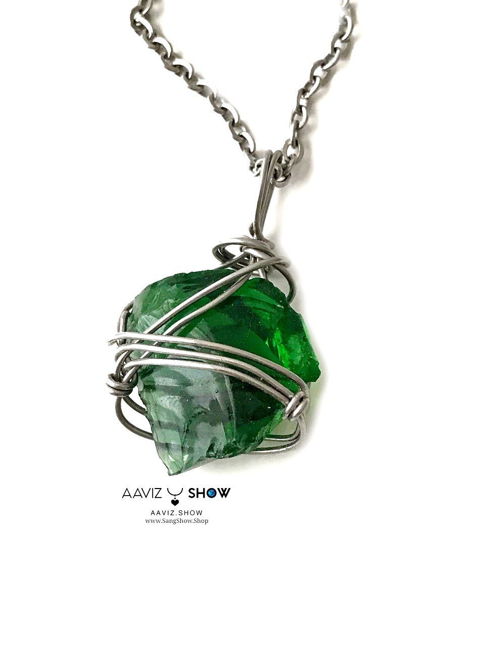 گردنبند سنگ ابسیدین سبز نمونه راف و استثنایی و معدنی ساخته شده با عشق خالص طبیعی و معدنی با خواص شگفت انگیز بهمراه زنجیر استیل ضد حساسیت