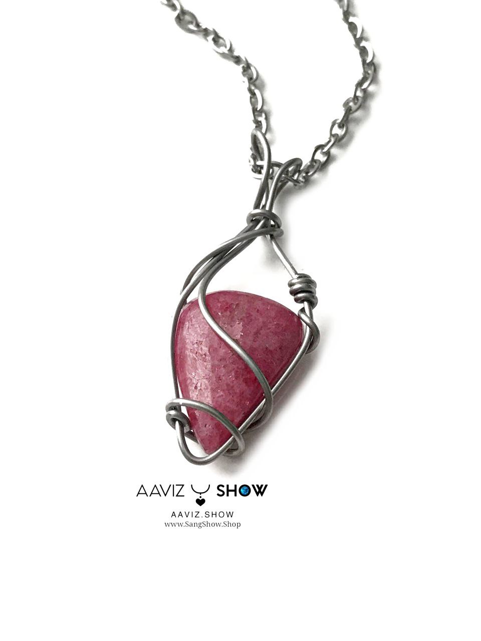 گردنبند سنگ رودونیت صورتی خوشرنگ و معدنی ساخته شده با عشق خالص طبیعی و معدنی با خواص شگفت انگیز بهمراه زنجیر استیل ضد حساسیت