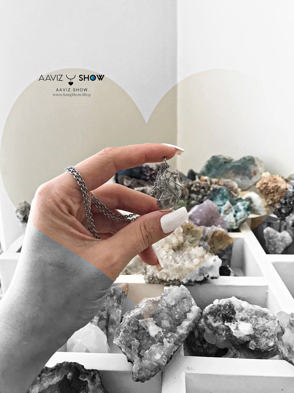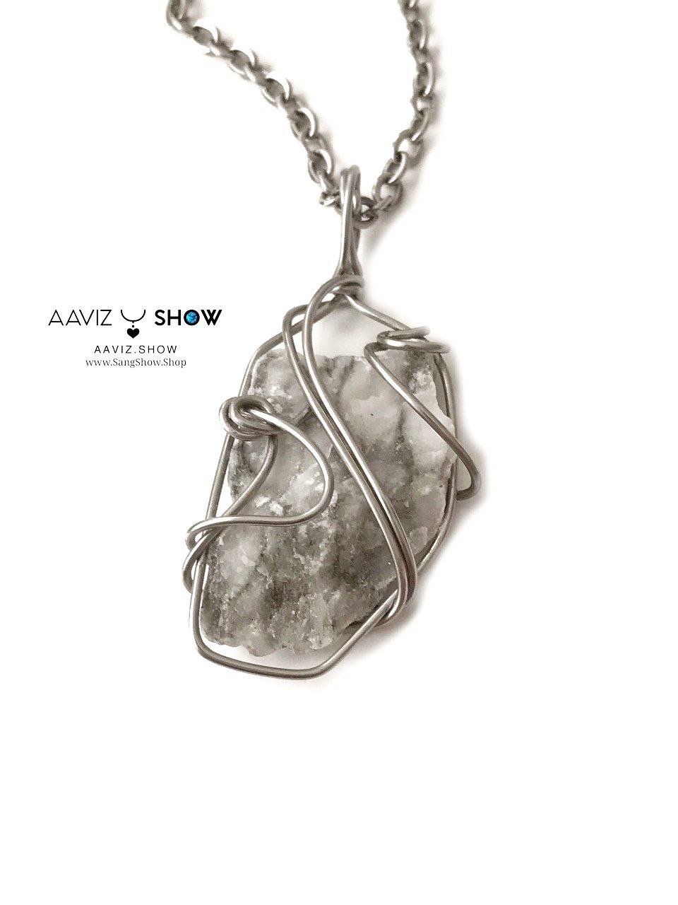 گردنبند سنگ هولیت یا هائولیت راف و معدنی نمونه اصل ساخته شده با عشق خالص طبیعی و معدنی با خواص شگفت انگیز بهمراه زنجیر استیل ضد حساسیت