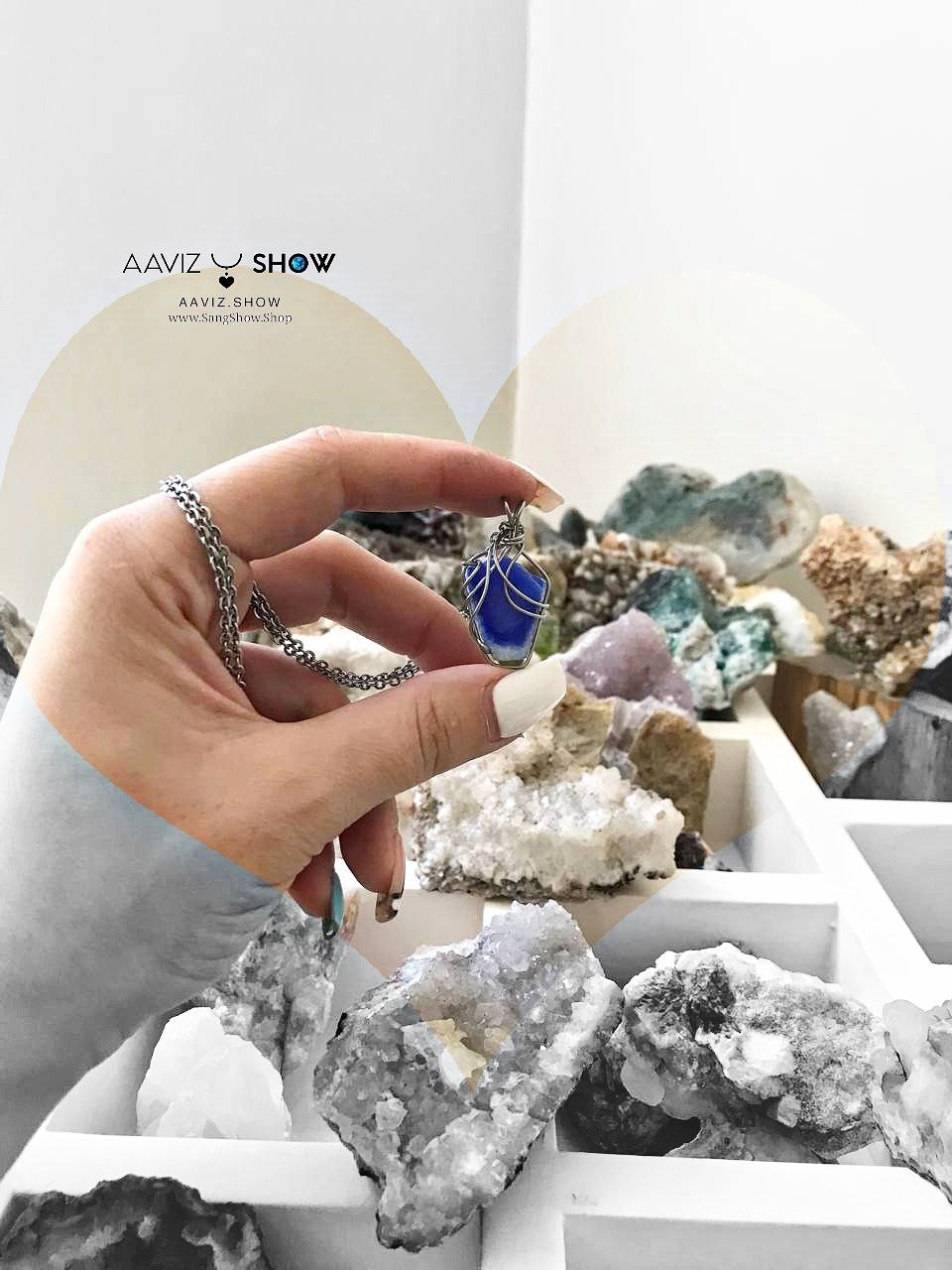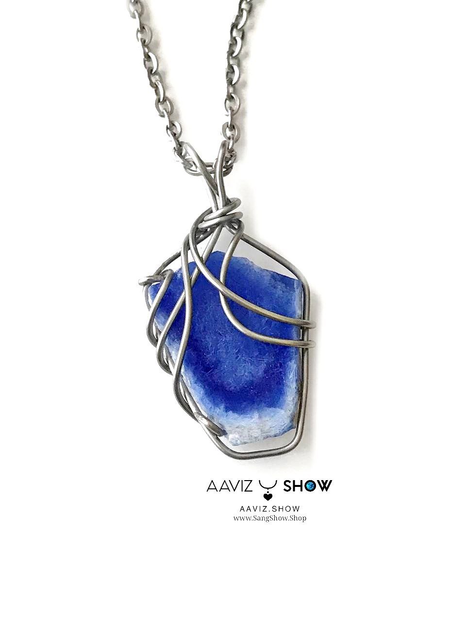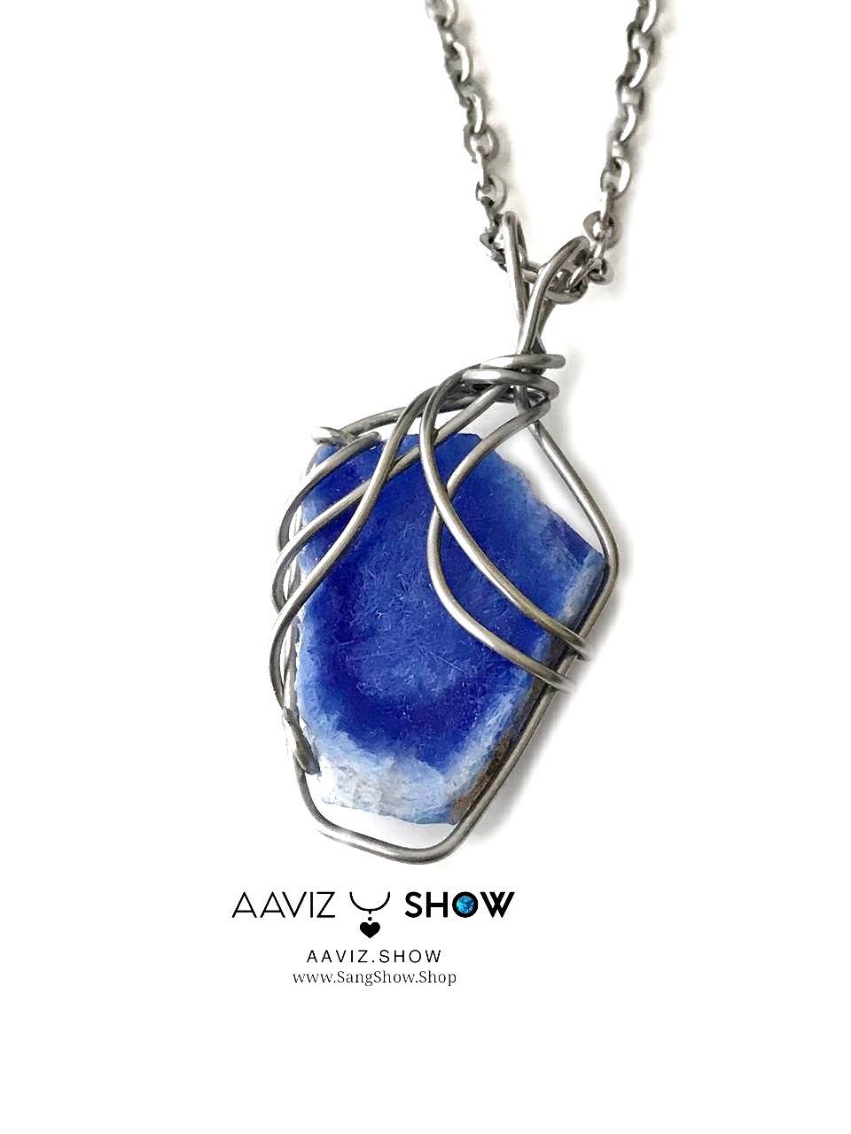 گردنبند کوارتز آبی راف و معدنی با قاب مفتولی ویژه ساخته شده با عشق خالص طبیعی و معدنی با خواص شگفت انگیز بهمراه زنجیر استیل ضد حساسیت